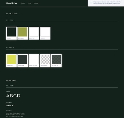 This page previews Global Fonts and Colors for this Kit. Changes made in Site Settings will be displayed here.